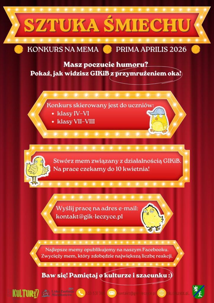 Informujemy, że Administratorem danych wskazanych w zgodzie na przetwarzanie danych osobowych wyrażonych na stronie jest Gminna Instytucja Kultury i Biblioteka w Łęczycach z siedzibą w Strzebielinie przy ulicy Tuwima 4. ((58) 676 16 99).