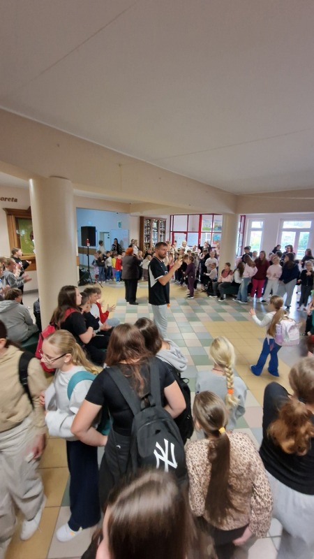 Celem wydarzenia było wprowadzenie do szkolnego rytmu odrobiny spontaniczności, zabawy i energii – a wszystko to za sprawą Pani Katarzyny Kobieli oraz Dyrektora naszej instytucji, którzy zainicjowali akcję, by pokazać, że nauka i dobra zabawa mogą iść w parze!